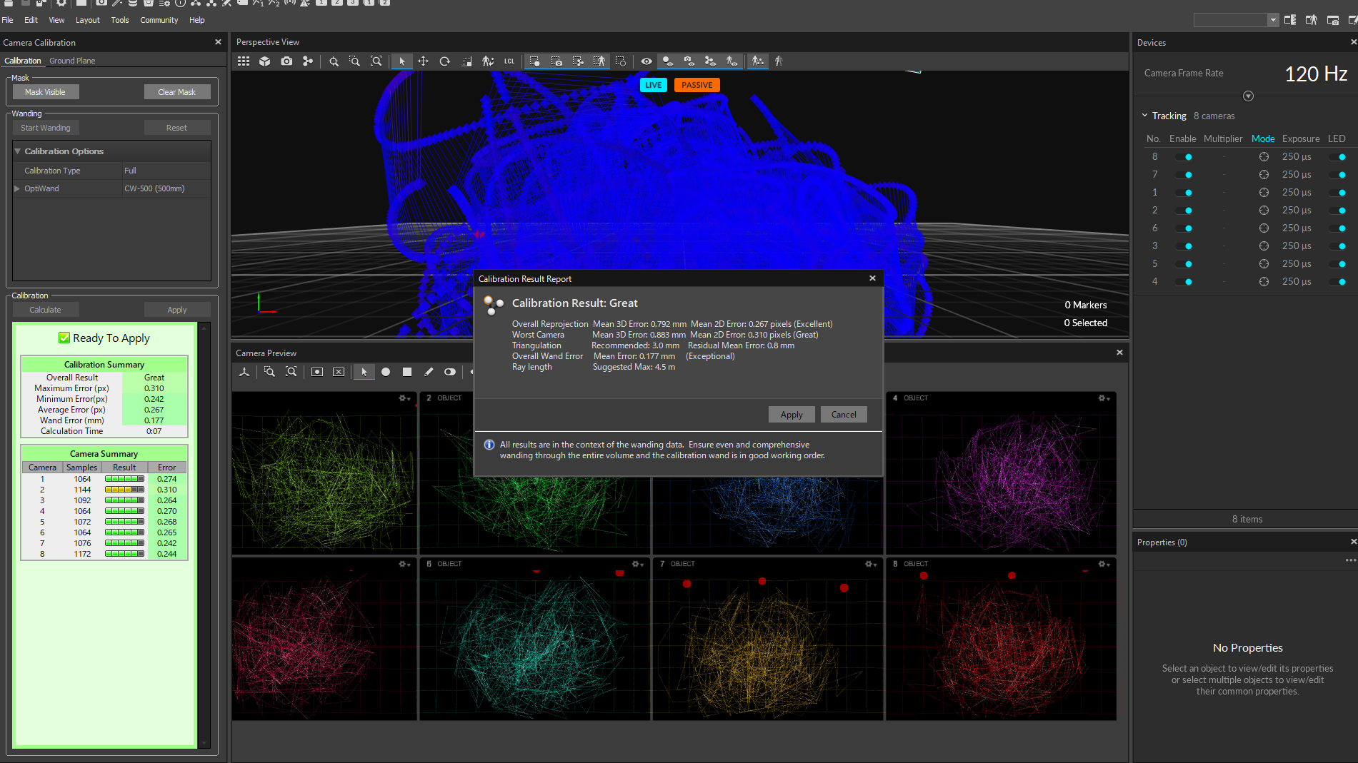 十分にサンプルが集まったら,各カメラのサンプル数が書かれているウィンドウの左上にある calculate ボタンを押します.すると以下のような画面になります.