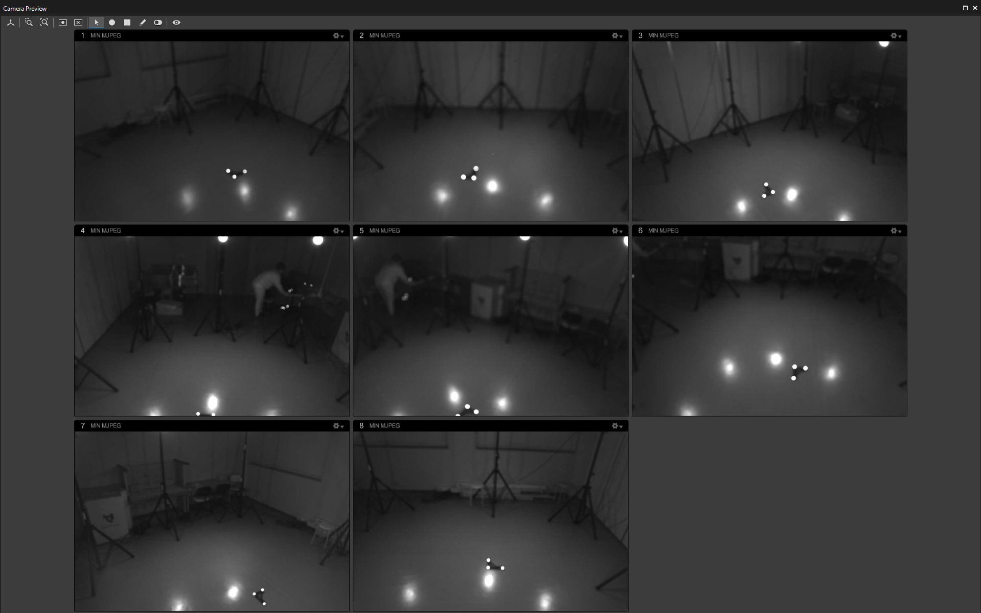 このままだと別のカメラの光や床の反射を認識してしまい,正しくキャプチャできないため,マスクを設定します.