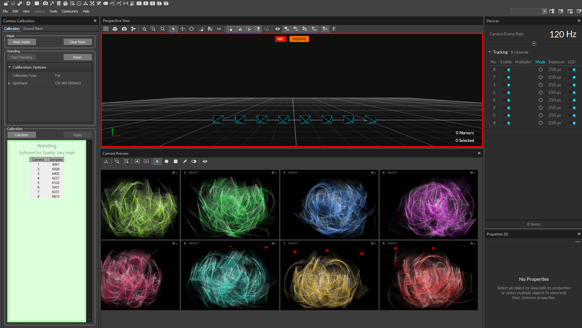 キャリブレーションワンディングと呼ばれる器具を持ち,カメラの範囲内に入ります.そこで,この器具を優しく揺らしながら8の字で繰り返し振り回します.全部のカメラに映るように全方向を向いて行います.