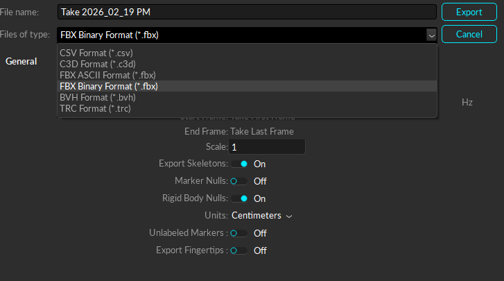 - FBXという基本的な3D系フォーマット.UnityやBlenderなど,たいていの3Dソフトで対応している.基本的な使用用途では推奨される.なお,ASCII formatは対応していないソフトが多いため,Binaryのほうが推奨される.
